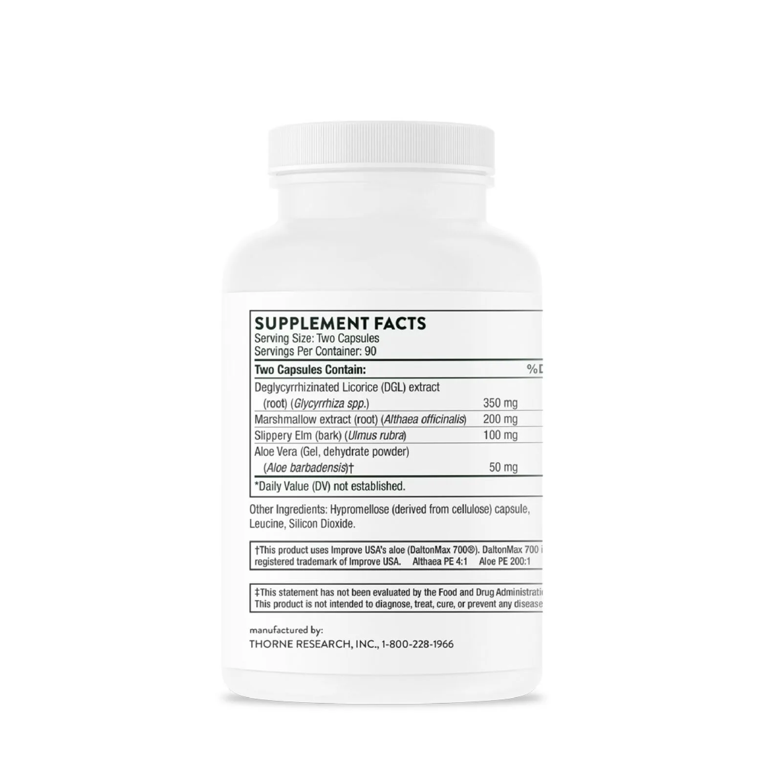 Dosage and Use:Take 1-2 capsules with each meal or as recommended by your health professional. Description:Although aloe vera has significant gastroprotective efficacy,* some forms of aloe vera can produce a laxative effect. GI-Encap’s aloe vera ingredient comes from the inner fillet of the aloe vera plant, which avoids this effect. Similarly, licorice root preparations, which support the stomach and duodenum,* can cause blood pressure to rise in some individuals when given in higher amounts. Therefore, the licorice in GI-Encap has had its glycyrrhizin removed, which prevents increases in blood pressure.* GI-Encap also contains slippery elm bark (Ulmus rubra) and marshmallow root (Althea officinalis), both of which contain mucilaginous components that can soothe the digestive tract.* To soothe esophageal irritation, GI-Encap can be taken out of the capsule and mixed with warm water to drink as a tea.*