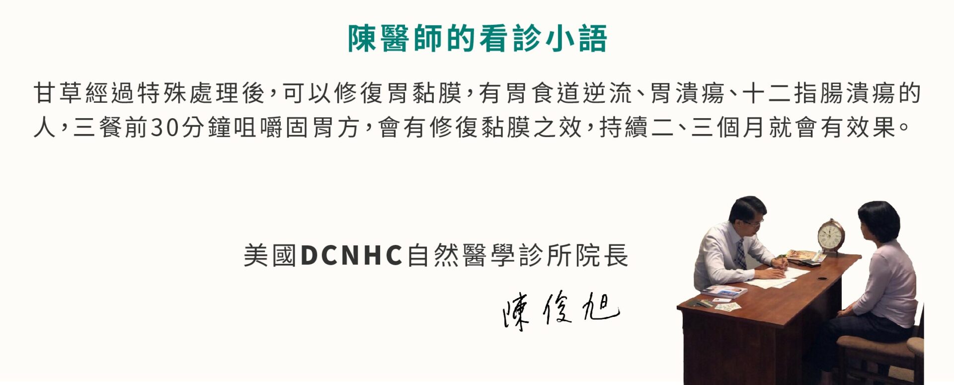 說明:固胃方為百分之百天然甘草精華(去甘草甜素),能快速舒緩胃不適,並有效的支援胃壁及腸道黏膜的修復,保護胃壁改善胃潰瘍與胃食道逆流,本產品利用萃取方式去除甘草甜素的甘草( 含量<1%),以避免血壓上升,長期也能安心使用。不含果糖和蔗糖,更適合糖尿病患使用。胃維持在酸的環境,才能啟動消化及產生對於微生物的防護,但黏膜細胞又需時時在酸的環境下自我防護,所以胃黏膜蛋白防護層的完整性對於胃的健康及舒適感是非常重要的。此款商品適合常因食用咖啡、辣物、炸物所造成的刺激。無果糖固胃方咬碎時會與唾液混合,能直接對胃黏膜產生作用以維護健康。本品不含人工色素、人工調味劑、奶製品、麥膠蛋白、動物性物質、防腐劑、鹽、大豆、小麥、酵母。本品純屬天然,顏色不同純屬自然現象。